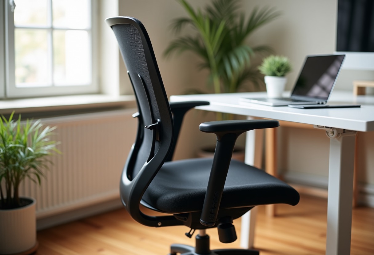 Seat tilt affects pelvic alignment and pressure distribution. A slight forward tilt (1-3 degrees) helps maintain lumbar curve when typing, while a backward tilt reduces disc pressure during phone calls or reading. Look for chairs offering both options rather than fixed positions.